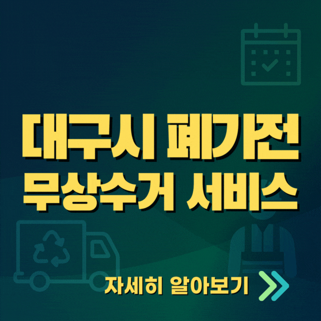 대구시 폐가전 무상수거 서비스는 시민의 생활 편의와 환경 보호를 동시에 실현하는 제도입니다. 👉 집에 방치된 가전제품이 있다면 지금 바로 신청해 보세요!