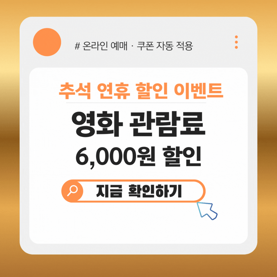 추석 연휴 ‘영화 6,000원 할인’ 총정리(예매·쿠폰·극장·기간)