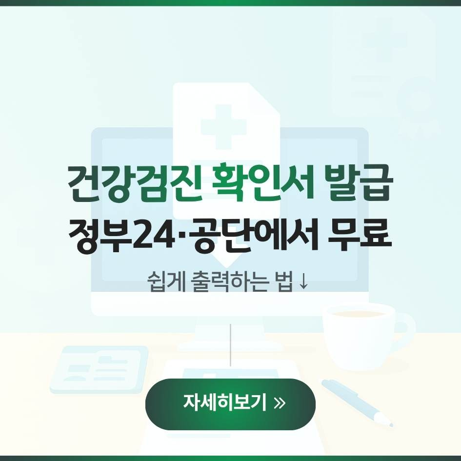 건강검진 확인서는 국민건강보험공단 또는 정부24를 통해 언제든 무료로 발급 가능합니다. 온라인은 빠르고 간편하며, 지사 방문 시 즉시 출력도 가능합니다. 필요 서류를 미리 준비해 놓으면 불필요한 대기 없이 빠르게 처리할 수 있습니다 💙