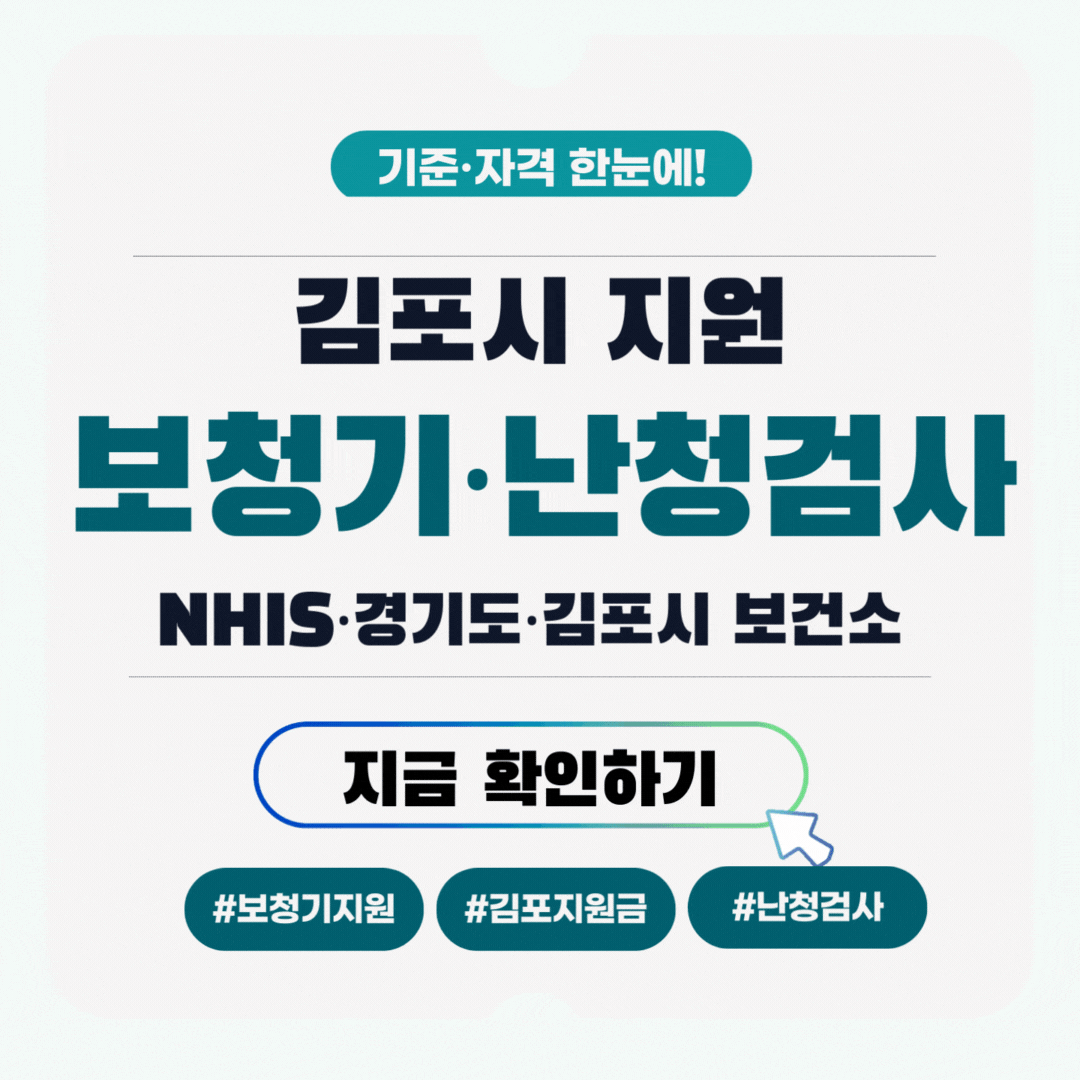 김포시는 보건소를 통해 신생아 난청 선별·확진검사 및 영유아 보청기를 지원(경기도 지침)하며, 성인은 국민건강보험 보장구 급여로 보청기를 지원받을 수 있습니다.