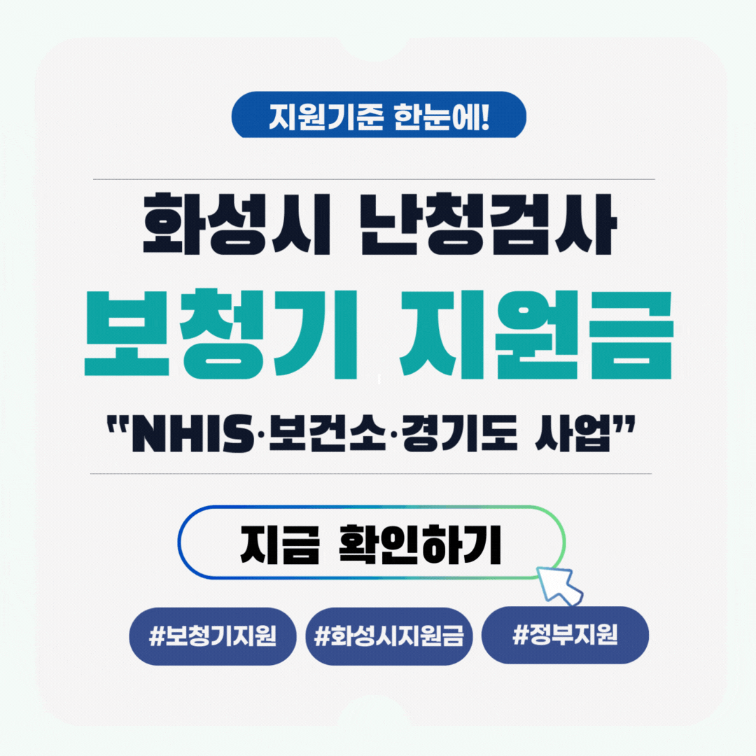 화성시 보건소 및 국민건강보험공단을 통한 난청검사·보청기 지원 안내입니다. 신생아·영유아는 경기도 사업으로 검사비·보청기(1개당 최대 131만원) 일부 지원, 청각장애 등록자는 보장구 급여로 기준액 1,310,000원(내구연한 5년)까지 인정됩니다. (기준일 2025.09.05)