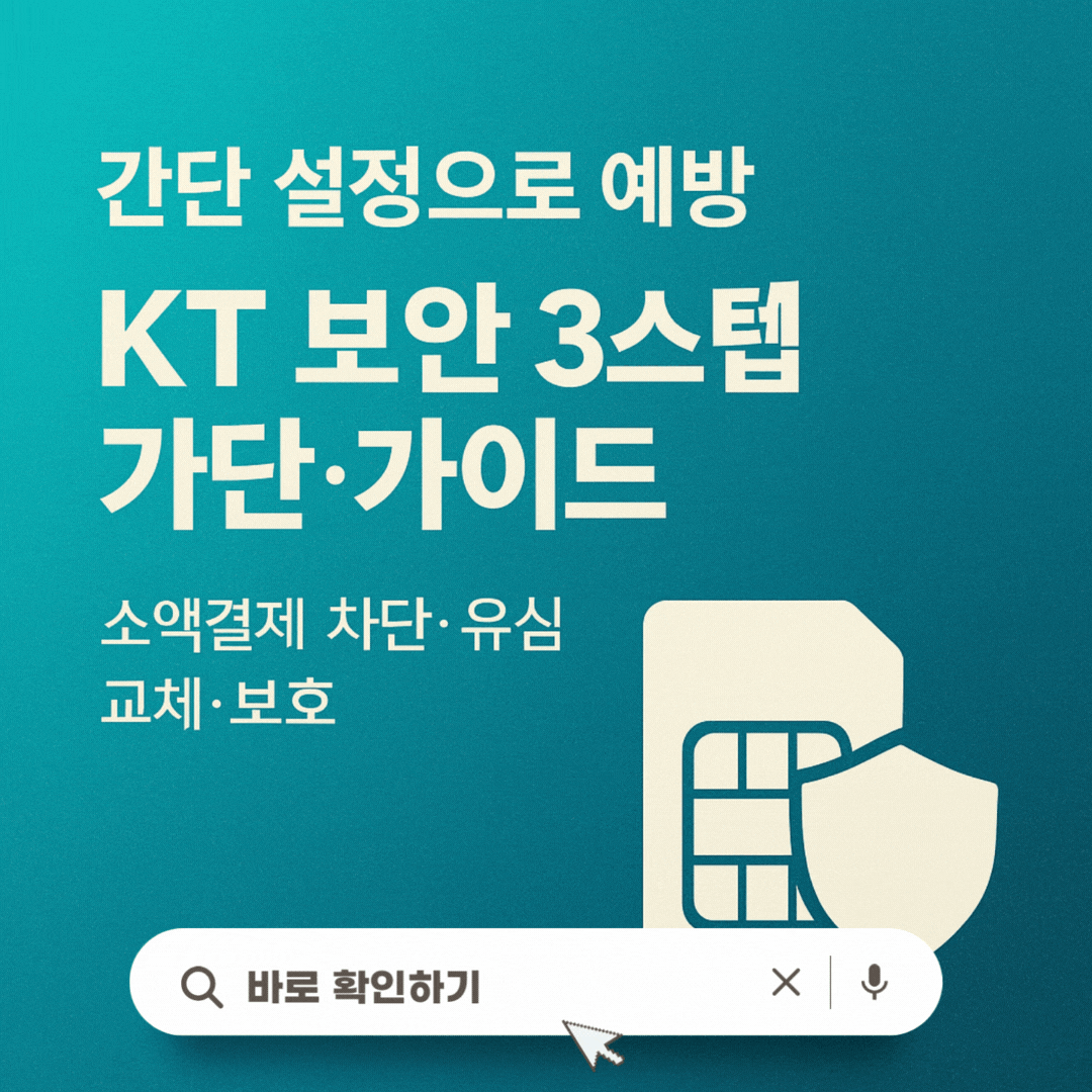 해킹·소액결제 피해가 늘어난 지금, KT 보안 3스텝만 지키면 계정·금융 피해를 선제 차단할 수 있습니다. 소액결제 차단/해지·한도 0원, 유심 무료 교체, 유심보호서비스 가입까지 한 번에 정리했습니다.