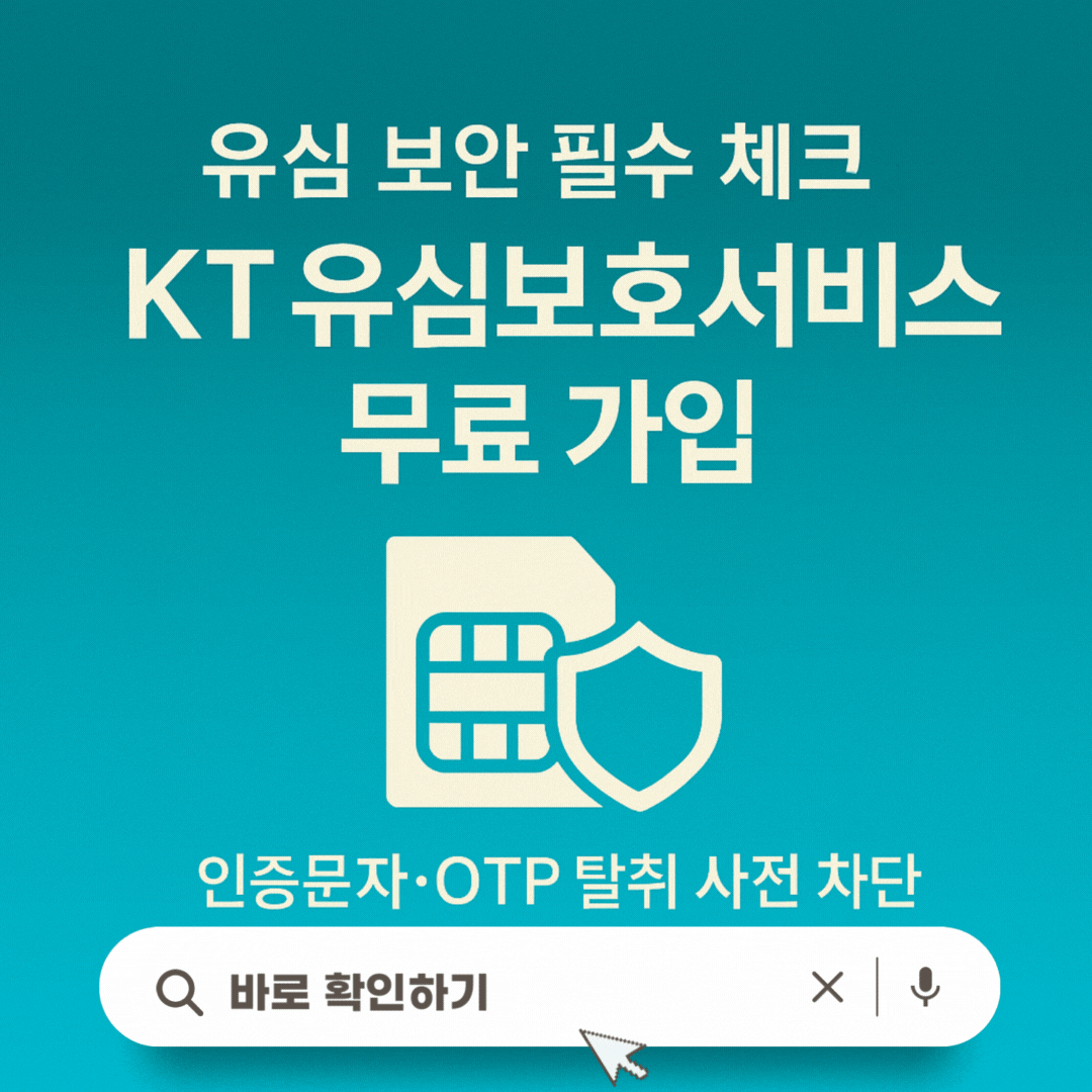 KT 유심보호서비스는 유심 보안을 강화해 인증문자/금융 OTP 탈취를 원천 차단하는 무료 부가서비스입니다. 최근 SIM 스와프 공격 증가로 필수 보안 수단으로 권장됩니다.